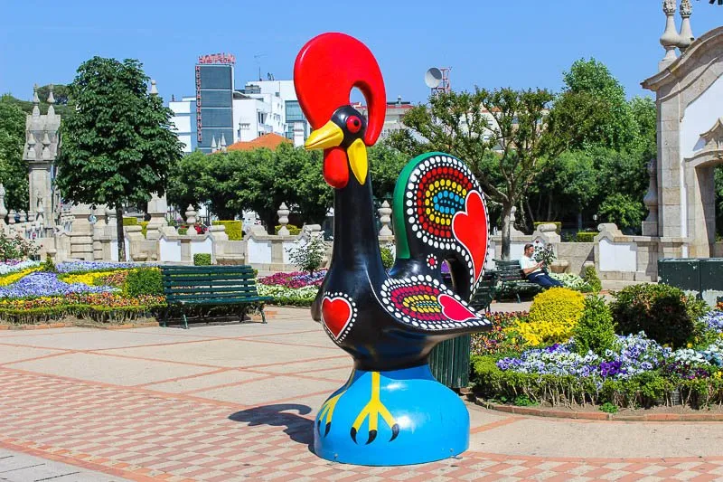 Outra atração imperdível é o icónico Galo de Barcelos, um símbolo de boas-vindas em cores vibrantes.